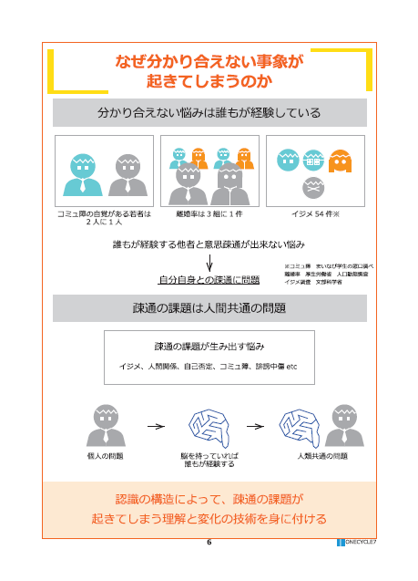 多くの人の心に傷を負わせた分かり合えないという事象が、なぜどのように起きてしまうのかを、個人の問題ではなく脳の認識構造の仕組みにあることを理解するガイドブックです。